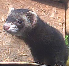 Unser erster Kandidat kam Frühsommer 2002 zu uns, Mephisto von uns benannt, er wurde damals in einer Scheune gefunden. Der erste Eindruck von ihm - sehr dunkler kontrastreicher, langer muskulöser Iltisrüde, lange Rute, total verängstigt, panische Augen aber auch lethargisch - seine Angst bezog sich aber eher auf die neue Umgebung, natürlich auch auf die Transportbox und Umgebungsgeräusche, Scheu vorm Menschen direkt hatte er nicht, man konnte ihn auch in aller Ruhe und mit gutem Zureden hochnehmen und beruhigen. Es konnte also kein normales Frettchen aber auch kein wilder Iltis sein, dies bestätigte uns dann auch jemand der es wissen muß.