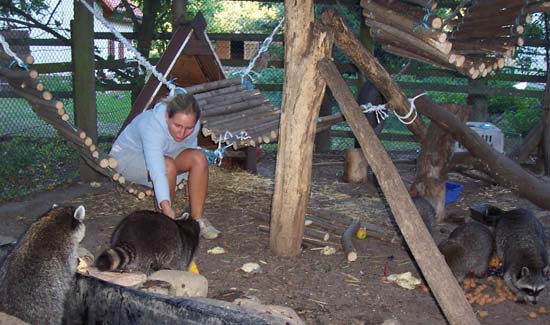 Und hier seht Ihr Vivien, die sich Tag täglich liebevoll um unsere Waschbären kümmert.